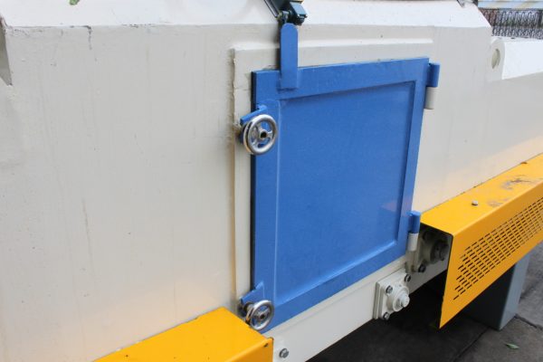 4.在將水泥地磚輸送至混凝土路面拋丸機內(nèi)部中后,通過使用步道磚模具澆筑成型的混凝土步道磚,受到來自空間結(jié)構(gòu)的不同方向的拋頭的密集強力彈丸的打擊與摩擦,使其其表面毛化,美飾。地面磚表面獲得一定的粗糙度的光潔表面,路面拋丸機在工作時,工作人員需要遠(yuǎn)離室體進出口處,防止彈丸飛濺入眼,并需要進行掛牌警示。