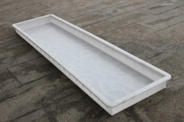 長(zhǎng)條高速蓋板模具主要設(shè)計(jì)結(jié)構(gòu)為鵝卵石凹凸印制,模具側(cè)部分別添加加強(qiáng)筋以保證不易變形及水泥制品脫模次數(shù)。在實(shí)際水泥制品生產(chǎn)過程中,填料,干透,再使用水泥基建設(shè)專用震動(dòng)平臺(tái)脫模,高速蓋板成品鵝卵石凹凸有致,減少路面防滑等產(chǎn)生不必要的危險(xiǎn)因素。根據(jù)高速蓋板模具的實(shí)際尺寸,在水泥蓋板澆筑過程中,亦可適當(dāng)添加一些鍍銅鋼纖維來(lái)增加高速蓋板的整體結(jié)構(gòu)牢固度。